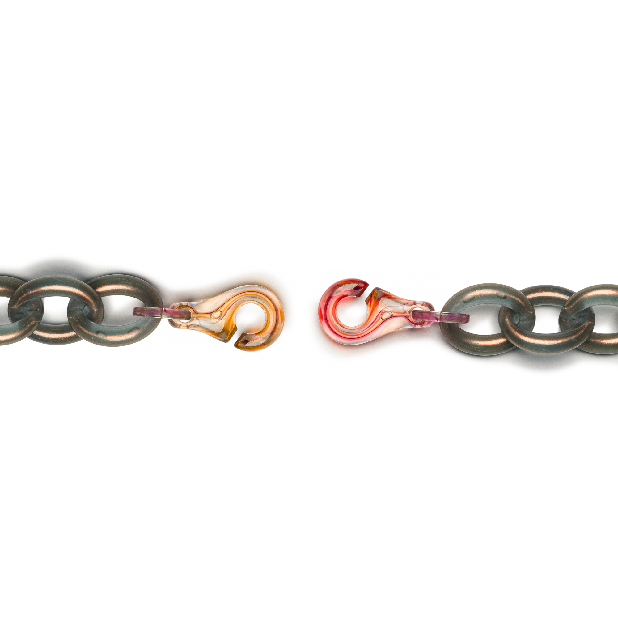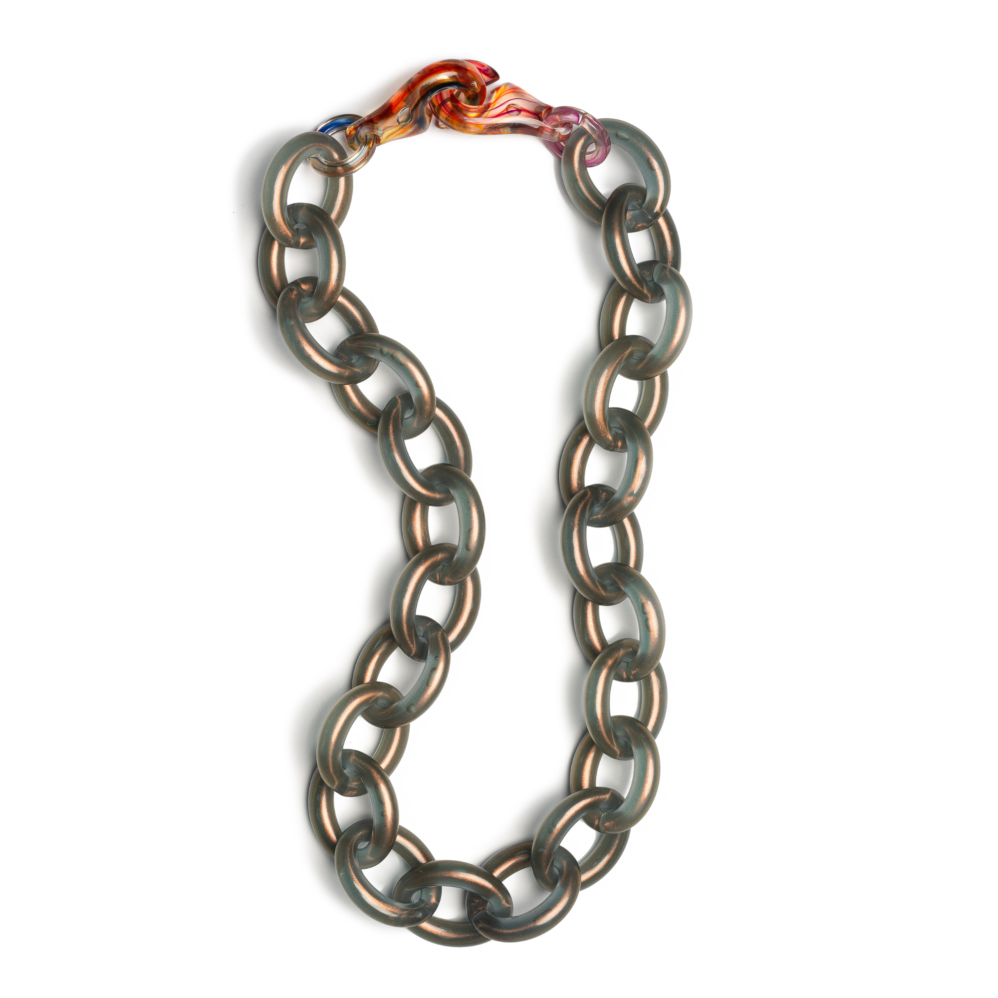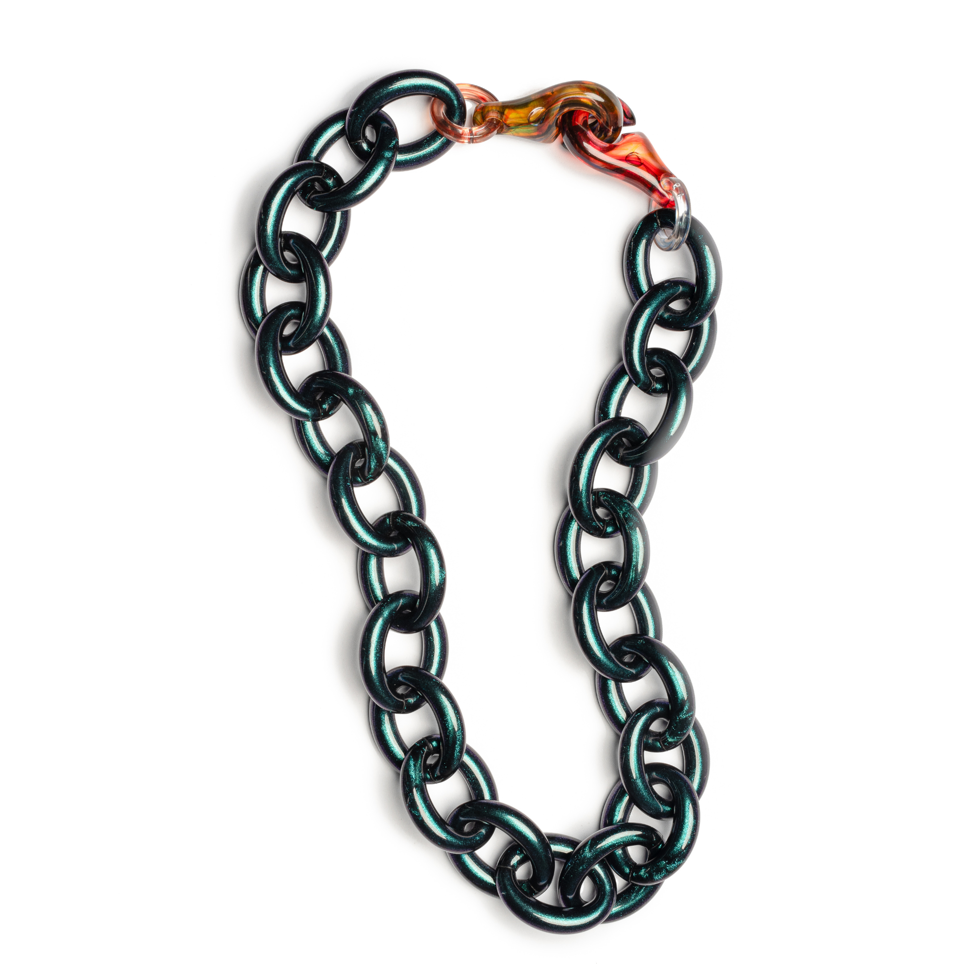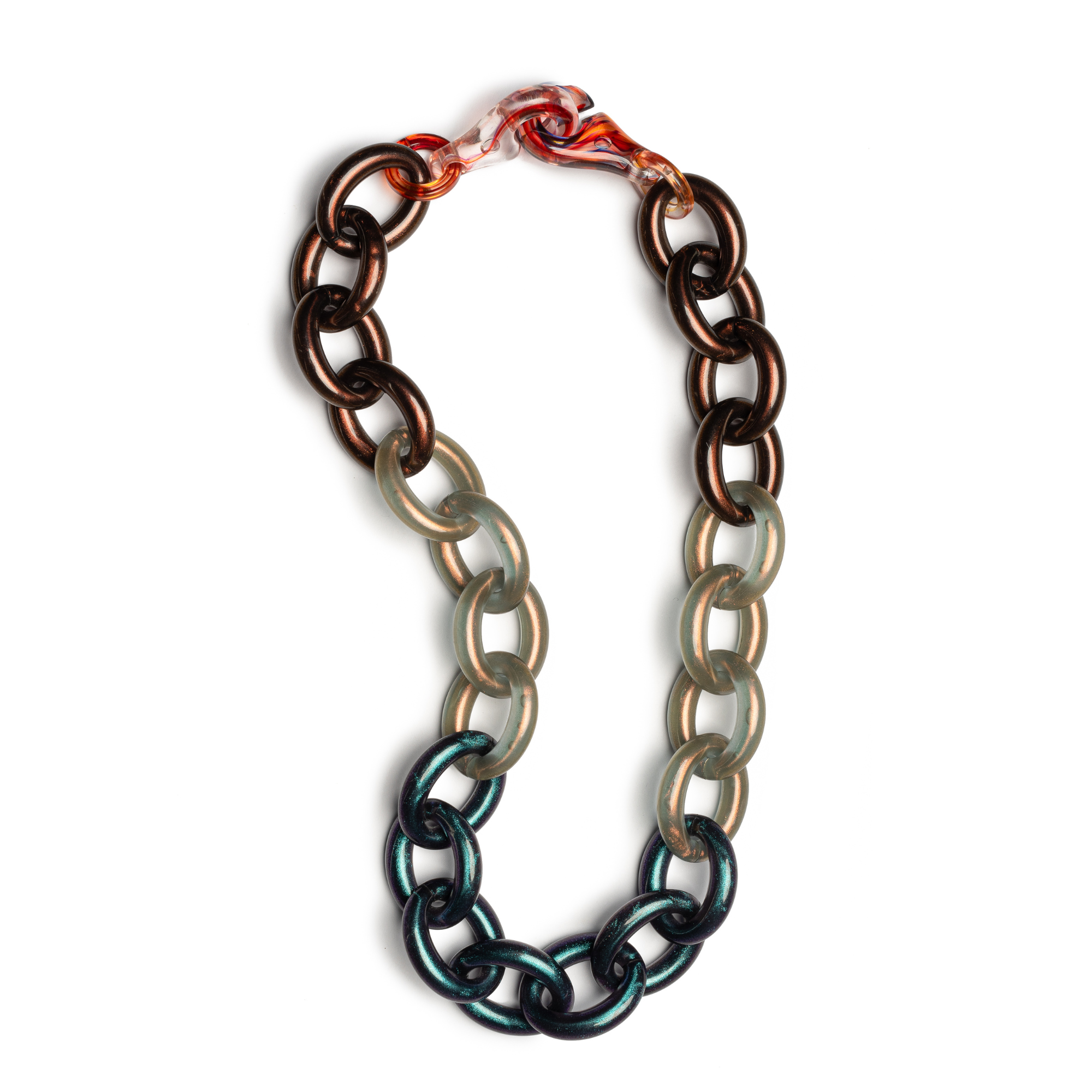 Featuring our bold and unique signature Sigma Clasp. This distinctive element captures and reflects the beautiful tones within the chain, adding a layer of artistry and individuality. No two clasps are ever the same — making every piece truly one of a kind.
